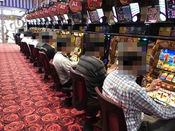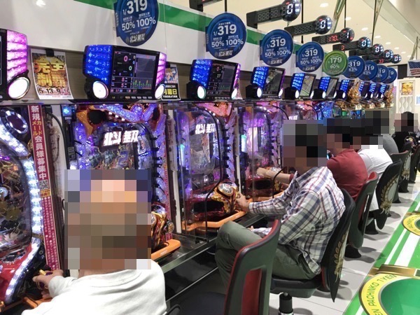 「ミリオンゴッド-神々の凱旋」は理想の展開をつかもうと、真剣な眼差しで遊技をするプレイヤーで盛り上がっており、空台を見つけることすら困難な稼働状況となっていた。