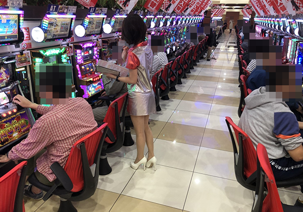 ホール内を巡回しつつ、プレイヤーとのコミュニケーションもバッチリな愛ちゃん♪