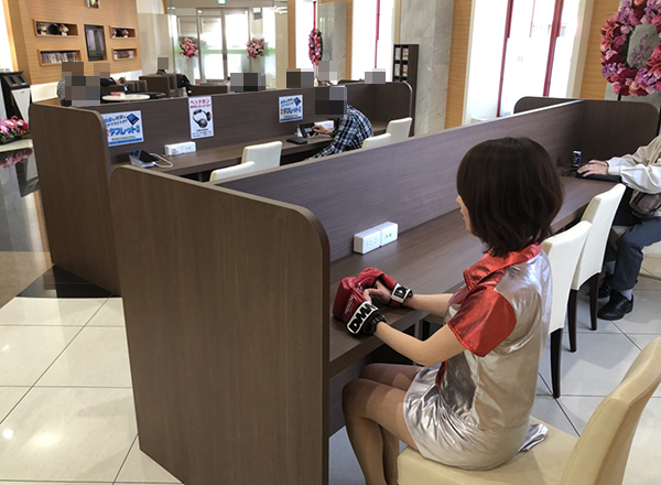 広々としたレストスペースには、漫画本やタブレットなどが用意されています。利用しているプレイヤーも多く、ひと息つける空間を気に入っているようにみえました♪