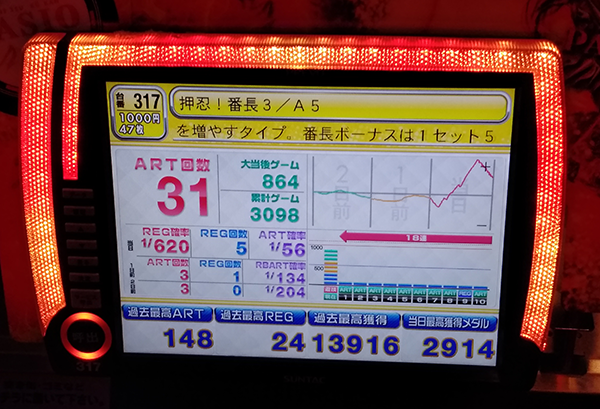 今回のアッパーは、324番台の【押忍!番長3】に出現した…