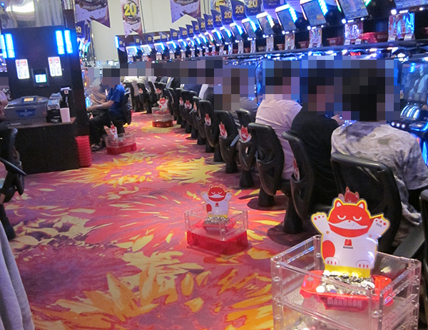 分煙ボードやひじ置きなど、遊技をおこなう際に活用する設備も充実している「マルハン長岡平島店」。過ごしやすい環境に魅力を感じているプレイヤーも多そうだ。