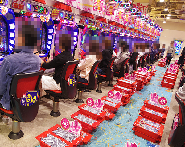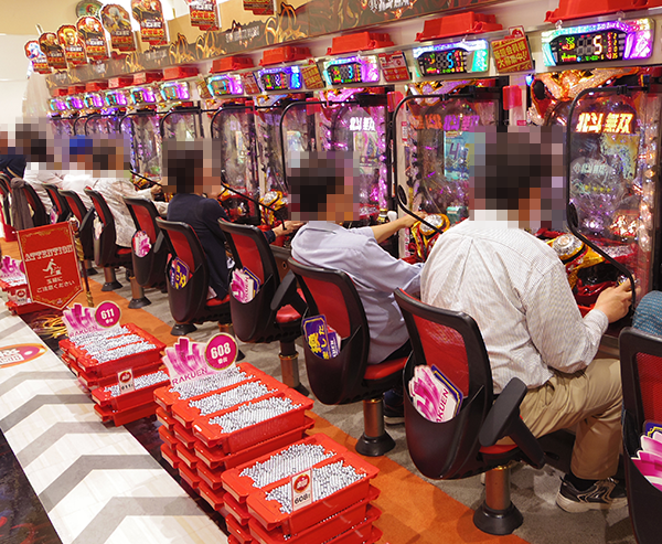1円パチンコにも笑顔のプレイヤーが多い。