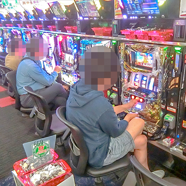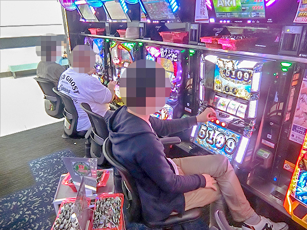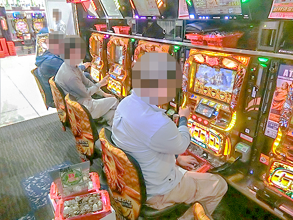 500円/490玉・500円/980玉と、2種類用意された低貸し玉パチンコはかなりの人気。シマ全体から盛り上がりが感じられた。