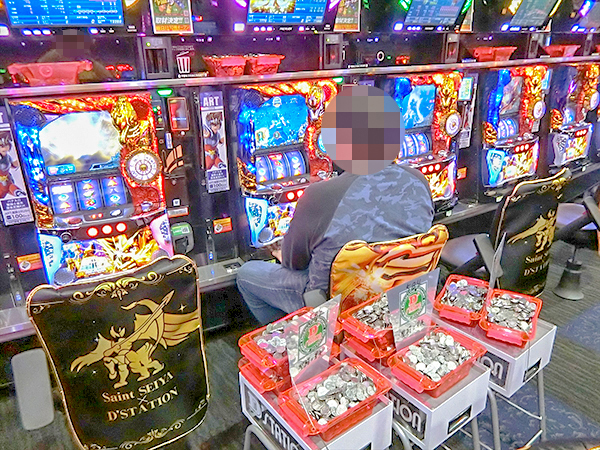 1000円/49枚パチスロを見渡すと、「ミリオンゴッド-神々の凱旋-」や「パチスロ聖闘士星矢 海皇覚醒」が盛況で、プレイヤーの華麗なパフォーマンスが目立っていた。
