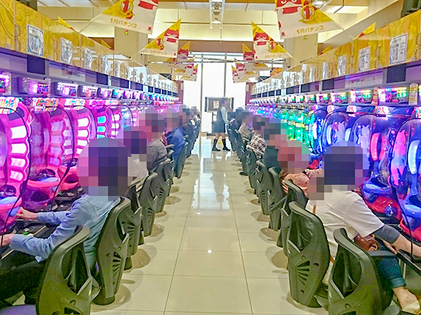 1円パチンコに目を向けると、「CR大海物語4」や「CRスーパー海物語IN沖縄4 桜バージョン 新マックス319ver.」などの海物語シリーズで、機種のポテンシャルを存分に発揮するプレイヤーが見受けられ、実に華やかな光景が広がっていた。