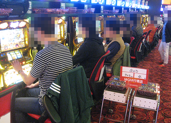 午後のパチスロにおいて、とくに活気づいていたのが「ミリオンゴッド-神々の凱旋-」。ポテンシャルを発揮しているようなプレイヤーが多く、ステキな光景がみられた。