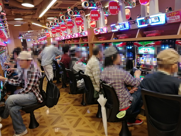 関西でも最大級の設置台数を誇るジャグラーシリーズだけに、それぞれが好みのジャグラーを存分に楽しんでいる様子だった。幅広い世代が楽しめる機種だけあり、フロアは明るい雰囲気に包まれていたのを記憶している。