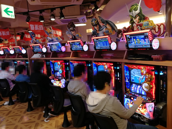 開店から人気があったのが、ジャグラーシリーズや「パチスロ聖闘士星矢 海皇覚醒」など。これから始まる展開に期待に満ちた表情を浮かべていた。