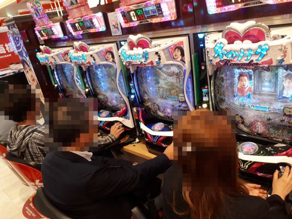オープン後、最初に席が埋まったのが、4円パチンコの新台「CRぱちんこ冬のソナタ Remember」。狙い台を絞っていたプレイヤーも多いようで瞬く間に満席となった。