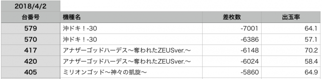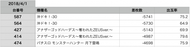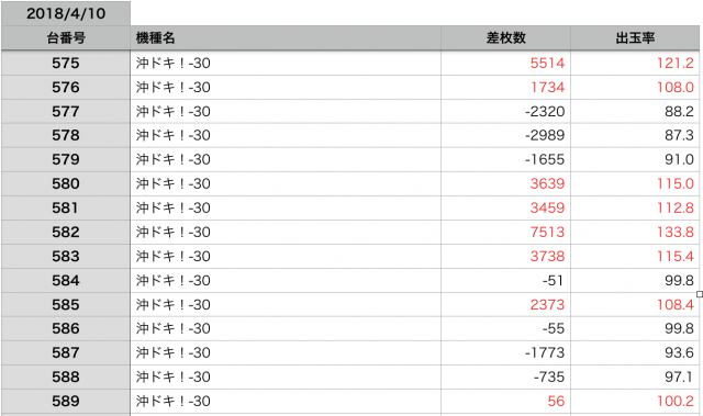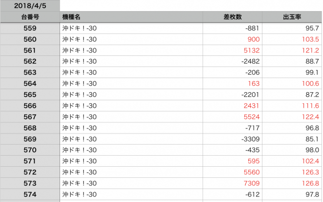 全データを確認すればわかるのですが、見る限り『沖ドキ!-30』が圧倒的に盛り上がって見えます。
