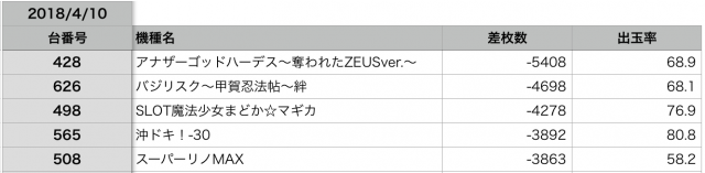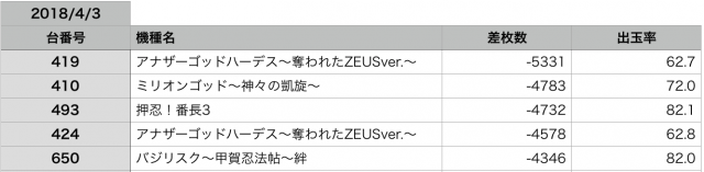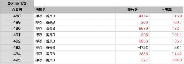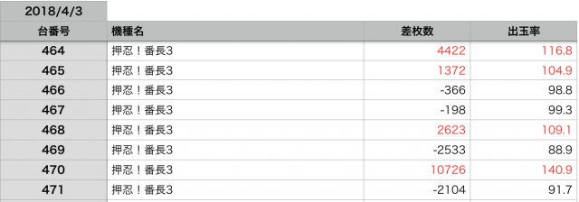 今回は『押忍!番長3』が、頂点をとった日と感じました。メイン機種、強いですね!