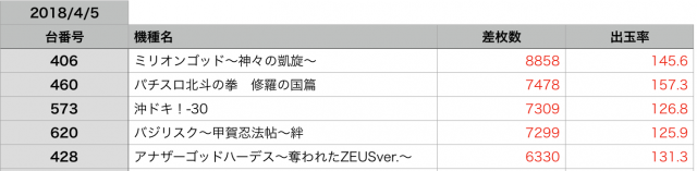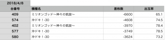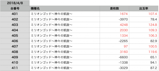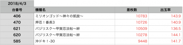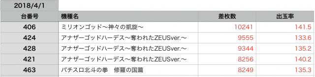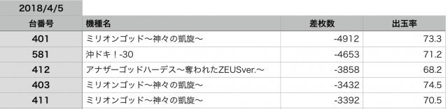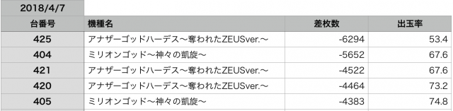予想としては『ミリオンゴッド-神々の凱旋』のシマが、本日の強機種だったのではないかと感じました!