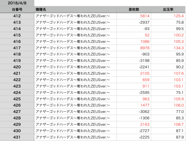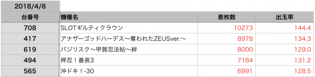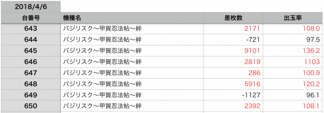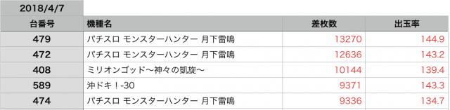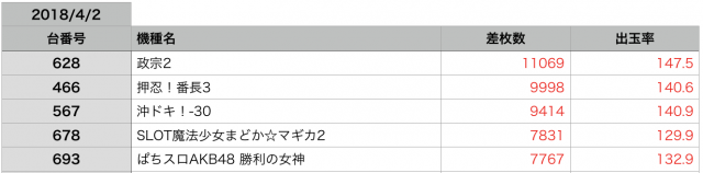 まさかの全台プラス差枚と、驚きの結果です。