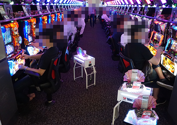 初日となる9日の店内では、大勢のプレイヤーがにこやかな表情で遊技を楽しんでいた。