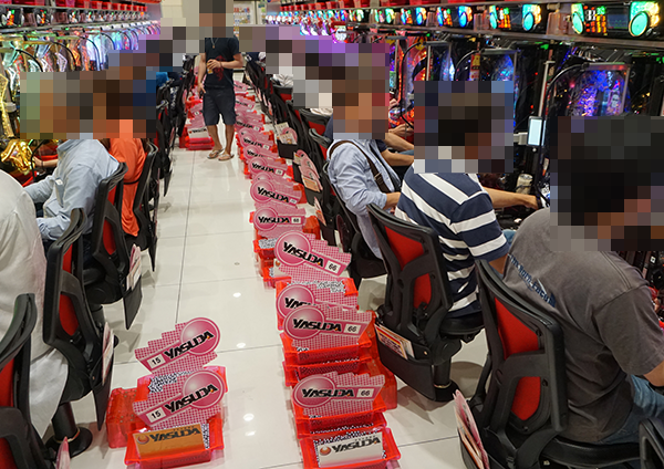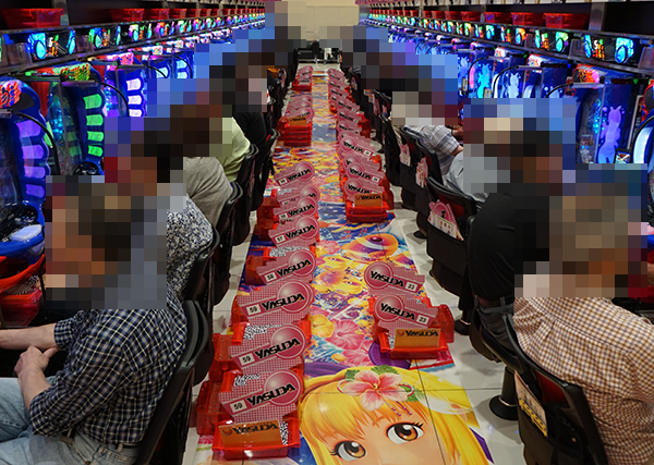午後の20円パチスロをみると、「押忍!番長3」や「パチスロ北斗の拳 転生の章」、「パチスロ聖闘士星矢 海皇覚醒」などが活況。いたるところにステキな光景が広がっており、うれしそうなプレイヤーの姿があったことも印象に残っている。