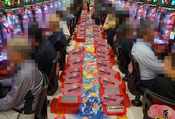 4円パチンコにおいては、海物語シリーズと「ぱちんこCR真・北斗無双」が活況。機種の性能を引き出しているようなプレイヤーの姿もみられ、シマ全体が明るい空間となっていた。
