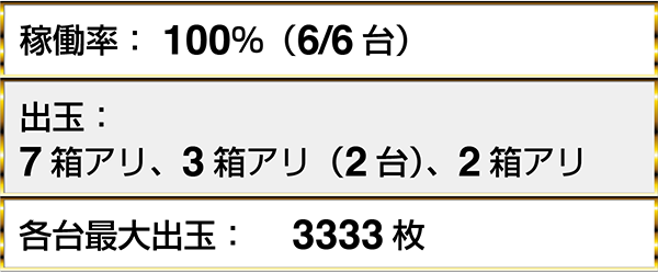 『押忍!番長3』や「マイジャグラーⅡ」にも3箱を超える出玉を確認した。