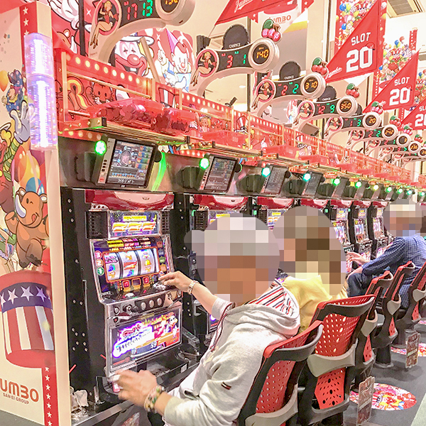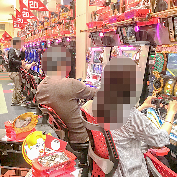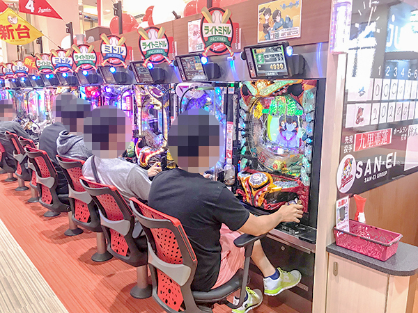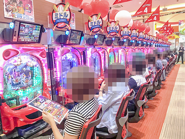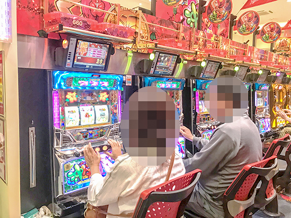 店内をのぞくと、老若男女を問わず多くのプレイヤーが集合。パチンコ・パチスロの各シマからにぎわいが感じられた。