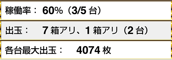 ・『ハナビ』が満席。7台中3台に出玉アリ