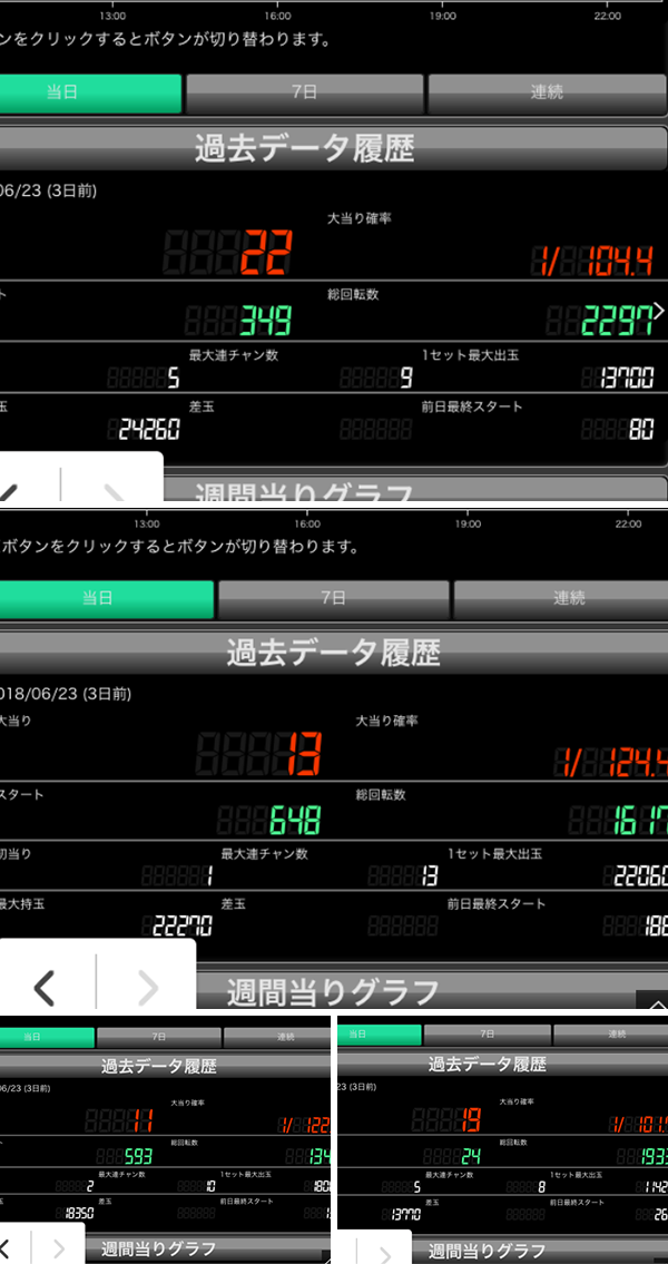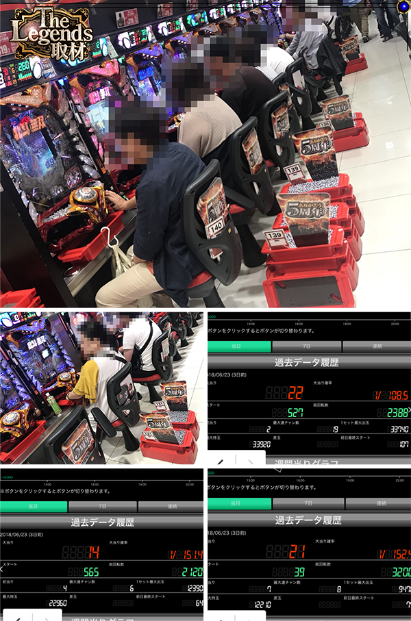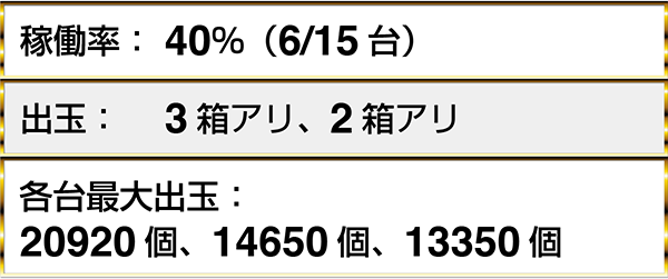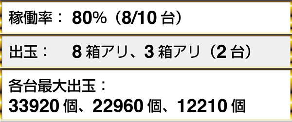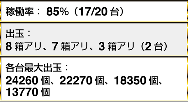 17時の時点で、どちらの機種にも8箱を超える出玉を獲得しているプレイヤーがみられた。