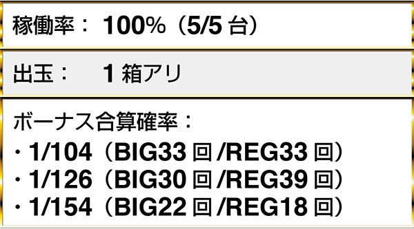 ・『アイムジャグラーEX-AE』の5台中2台がボーナス合算確率1/130以下