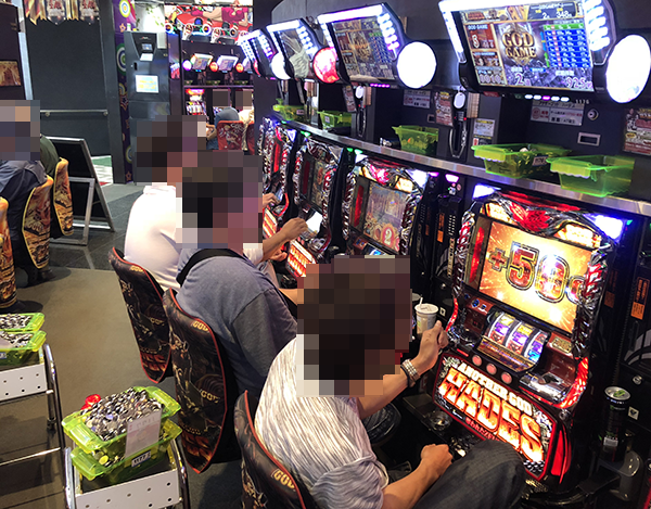 15時頃のパチスロでは、「ミリオンゴッド-神々の凱旋-」と「アナザーゴッドハーデス」がひときわ盛況。笑顔で遊技を楽しんでいるプレイヤーが多く、満足度も高そうであった。
