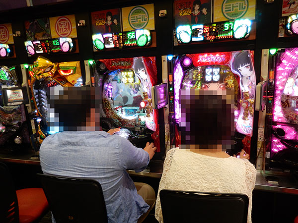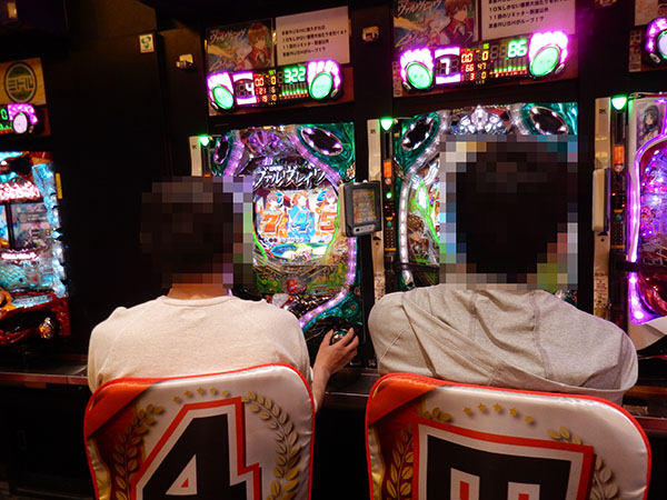 14時頃の4円パチンコでは、「CR地獄少女 宵伽」や「CRフィーバー革命機ヴァルヴレイヴ」が中高年層に好評。遊技をしているプレイヤーたちの表情は明るく、心から楽しめていることも伝わってきた。