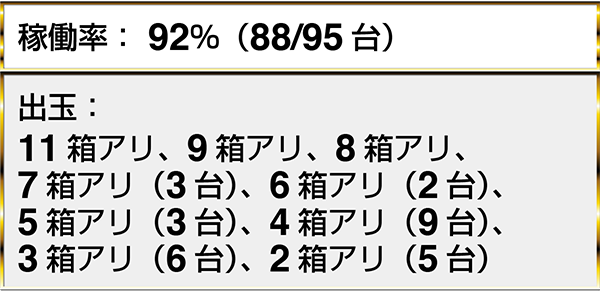 ・『ぱちんこCR真・北斗無双』では31名以上が持ち玉遊技。もっとも多かった出玉は11箱