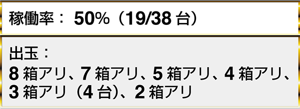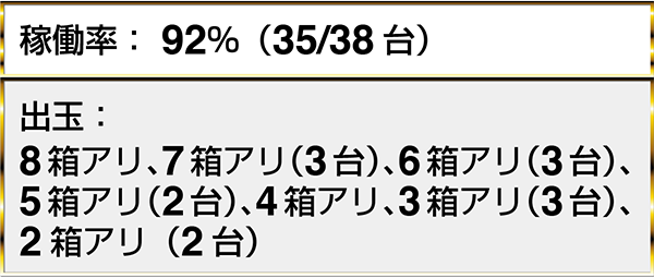 2機種をあわせて、46名以上のプレイヤーが2箱を超える出玉を獲得していた。