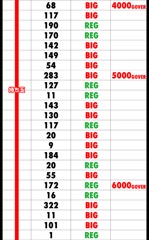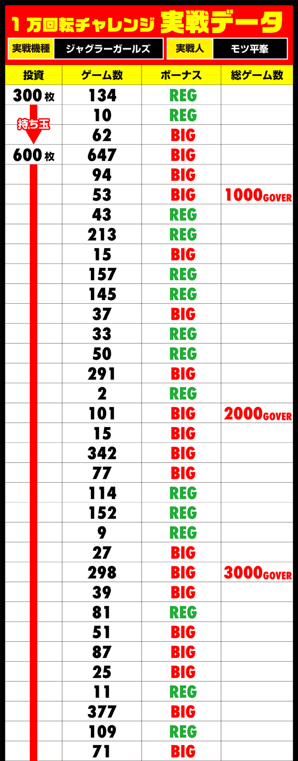 達成したいといった強い気持ちはあるものの、BIGとREGの回数だけがグングンと伸びていった。