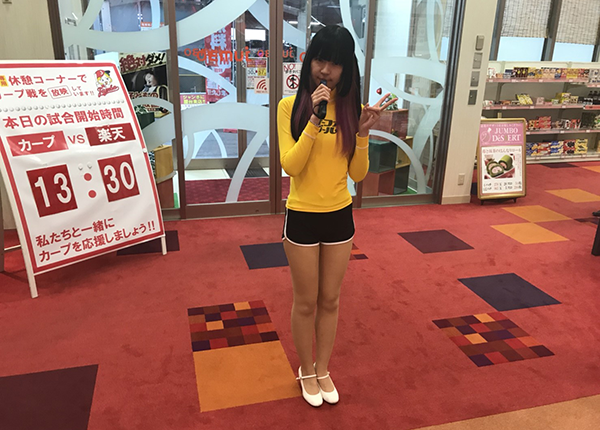 元気なポーズでパチスロの盛り上がりを表現するかのんちゃん☆