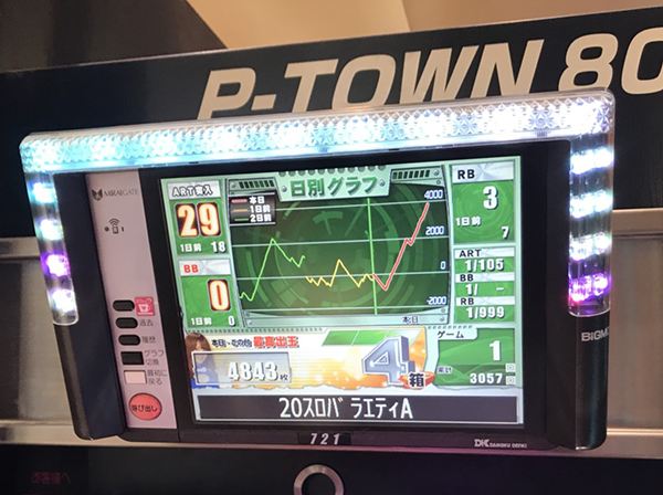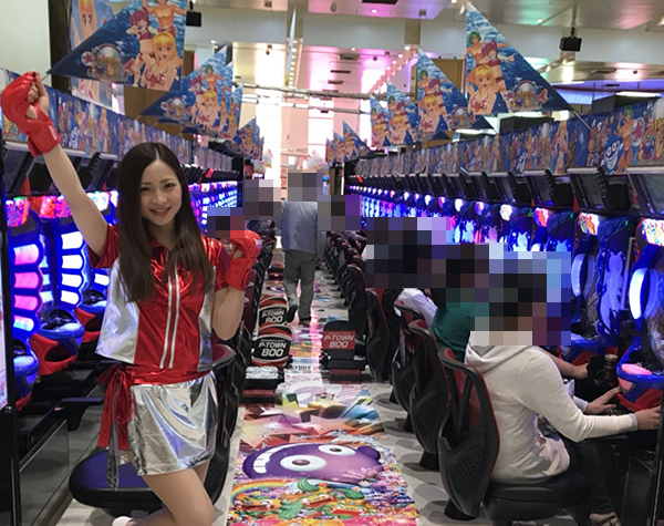 パチンコとパチスロの両方からにぎわいが感じられ、蘭ちゃんのテンションもさらに上がっているようにみえました。