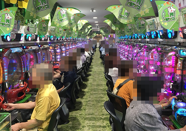 じっくりと遊べるといった1.06円パチンコも明るい雰囲気。