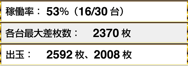 『バジリスク~甲賀忍法帖~絆』や『ミリオンゴッド-神々の凱旋-』でも、持ち玉が2000枚を超えているデータを確認した。