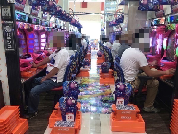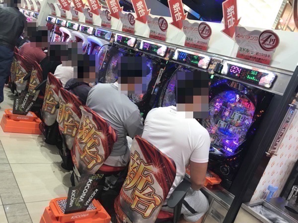 16時を過ぎた頃の4円パチンコでは、「CRスーパー海物語IN沖縄4」や「CR大海物語4」といった海物語シリーズが大盛り上がり。プレイヤーのイキイキとした表情からも、納得のいく遊技ができていたことだろう。
