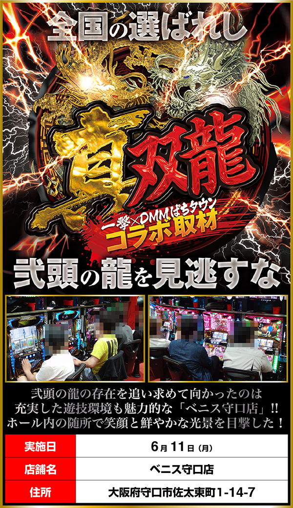 清潔な環境が整えられている「ベニス守口店」を舞台に「真双龍」を敢行。