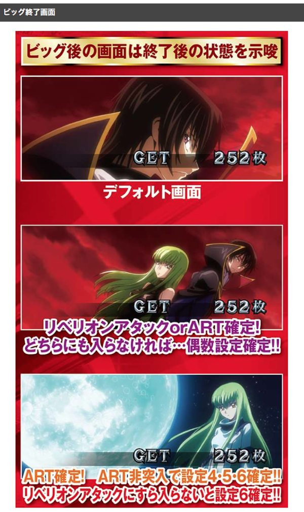 ▼「パチスロコードギアス反逆のルルーシュR2」設定推測ポイント▼