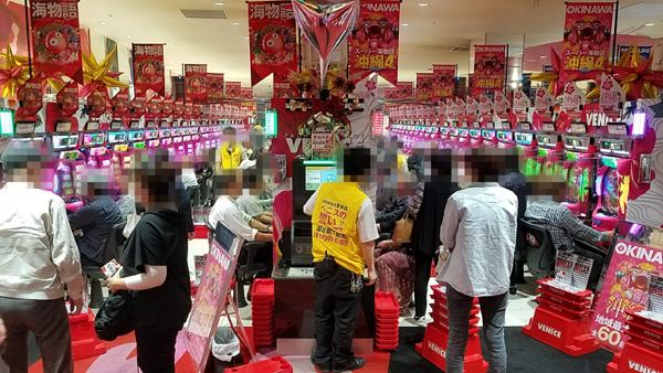 パチンコ・パチスロともに、多くのプレイヤーでにぎわう店内からは活気が感じられた。