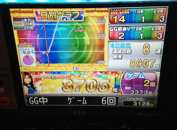 今回のアッパーは、MJ天神Ⅰ&Ⅱの1333番台の【ミリオンゴッド-神々の凱旋-】と