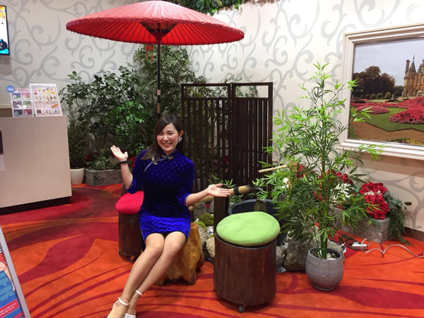 ブルーのチャイナドレス風のコスチュームに変身完了! ミニスカートになっているところもポイントですよ(≧∇≦)