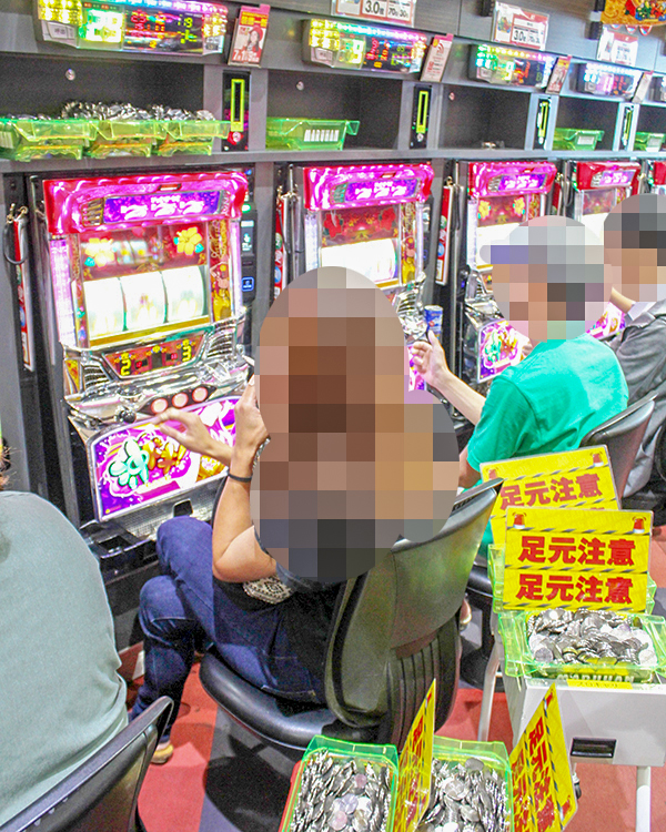 「押忍!番長3」や「ミリオンゴッド-神々の凱旋-」、「パチスロ黄門ちゃま 喝」も盛況の様子。プレイヤーたちの笑顔を見ると、充実した時間を過ごしていたことがうかがえる。