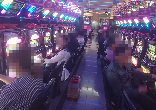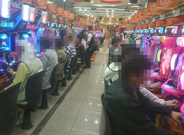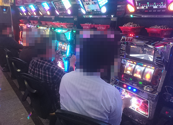 夕方頃のパチスロでは、「バジリスク~甲賀忍法帖~絆」や「パチスロ モンスターハンター 月下雷鳴」、「パチスロ聖闘士星矢 海皇覚醒」などが満席。高稼働となっていただけでなく、機種のポテンシャルを発揮できているような姿もあちこちでみられた。