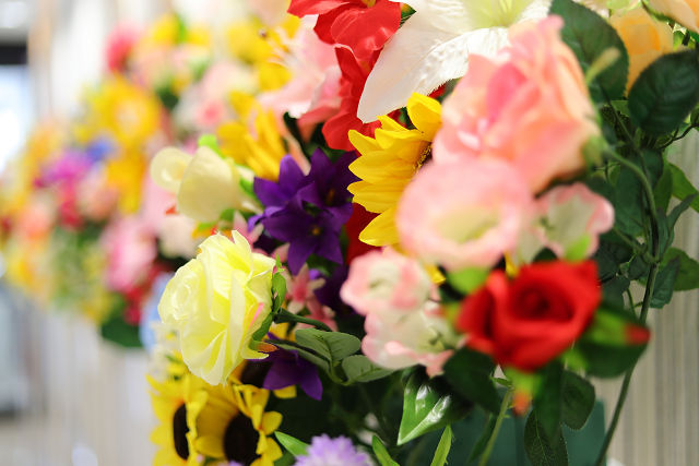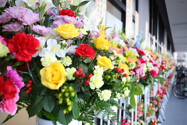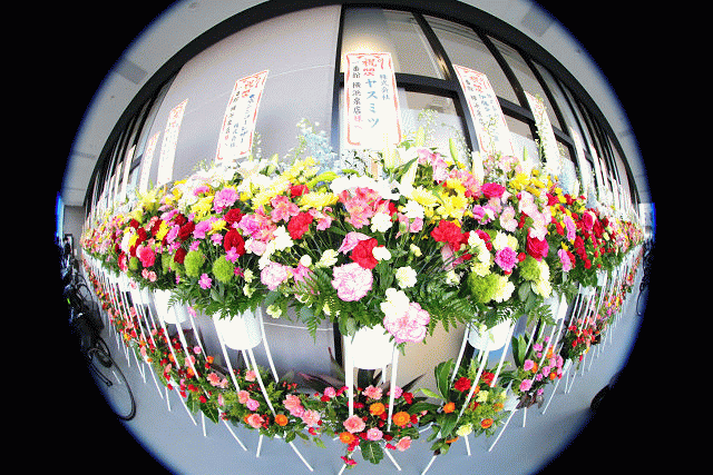そして、壁際には「一番舘」のグランドオープンを祝し、大量のフラワースタンドがディスプレイされている。