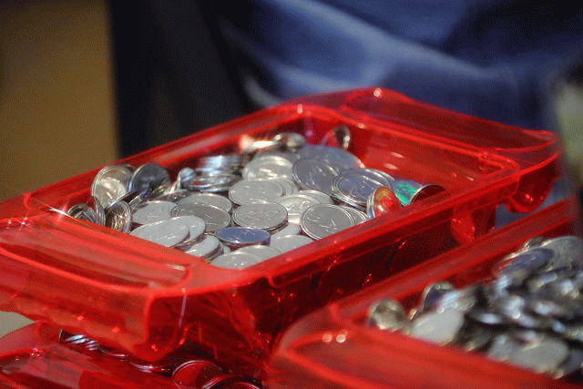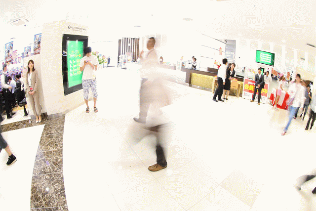 各台計数機(パーソナルシステム)の採用で、パチンコフロアは大賑わいでも、通路の移動は楽々