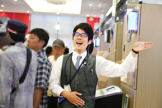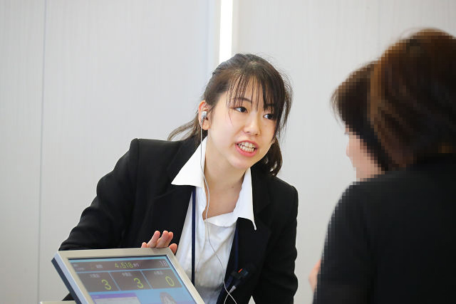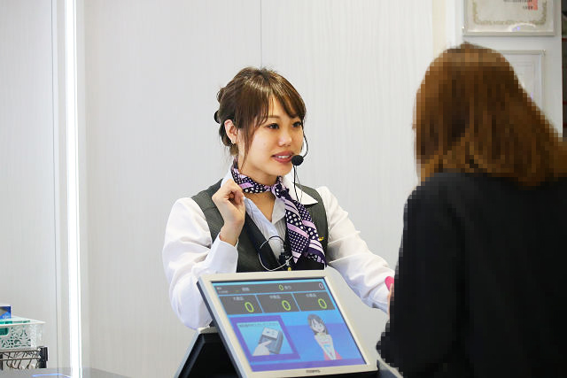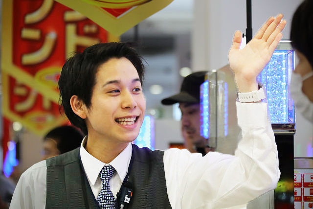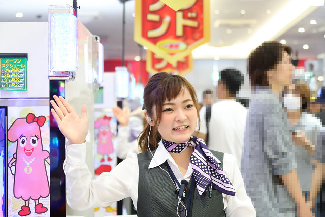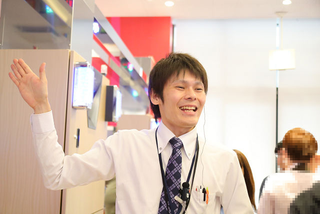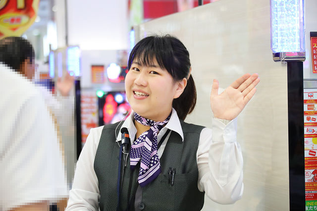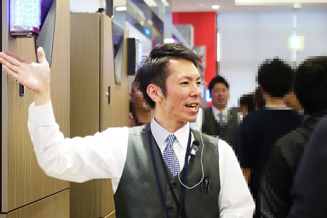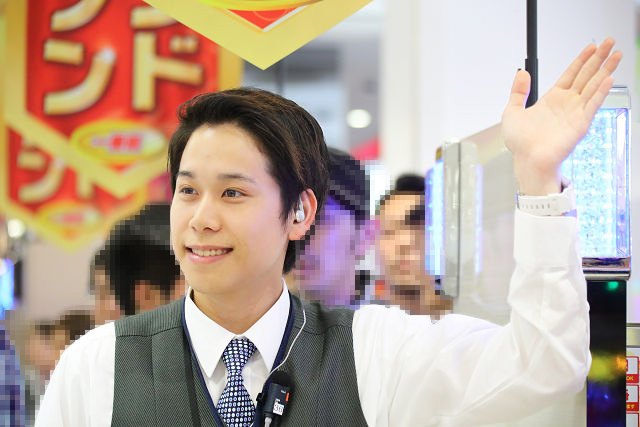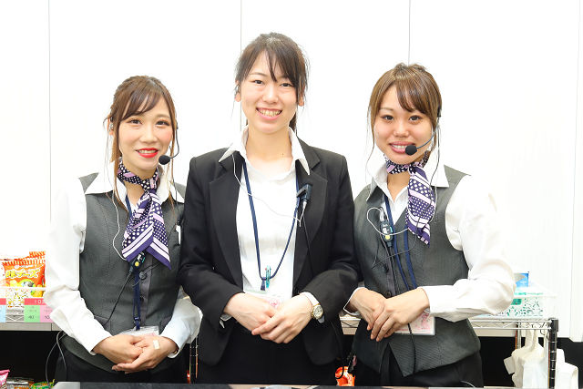 中央通路には、スタッフがスタンバイ。各コーナーを眩い笑顔でご案内!