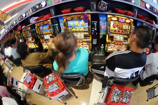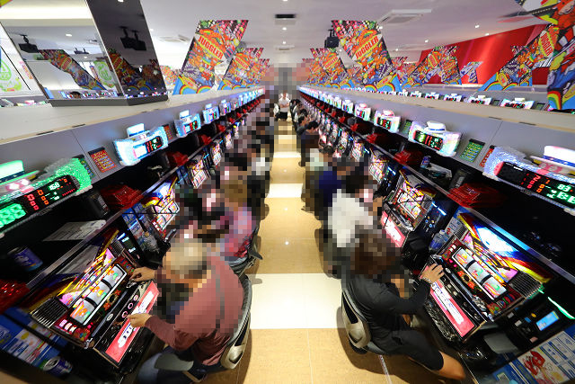 店内に戻ると、パチンコもパチスロも大当り・ビッグボーナスのBGMが、耳に心地よく響く!