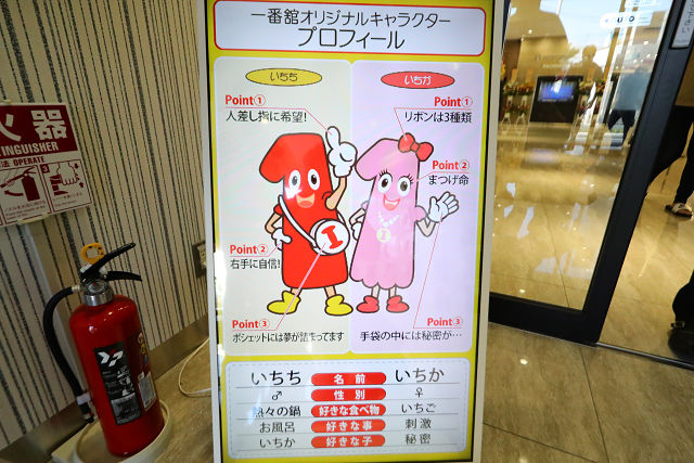 島に描かれているのは、一番舘のイメージキャラクター「いちち」と「いちか」