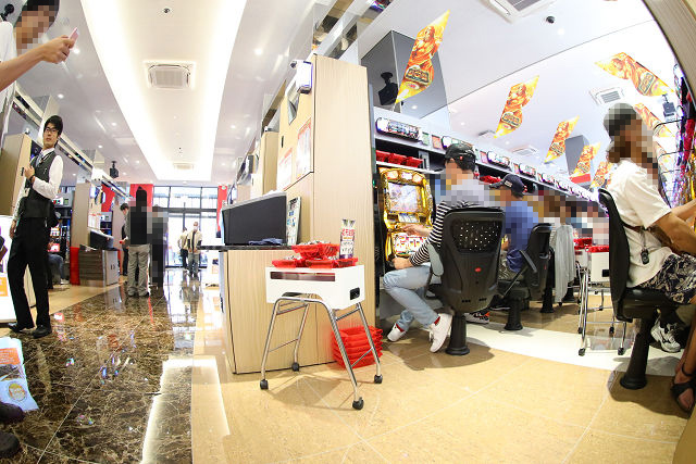 空き台探し・様子見で訪れたファンも、広々としたレストスペースで、ゆったりその刻(チャンス)を待つ。