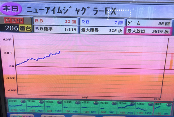 今回のアッパーは、206番台の【ニューアイムジャグラーEX】に出現した…