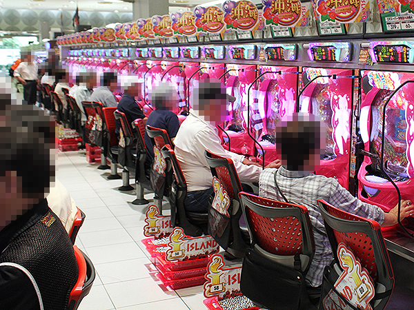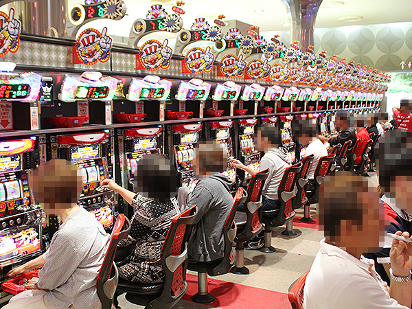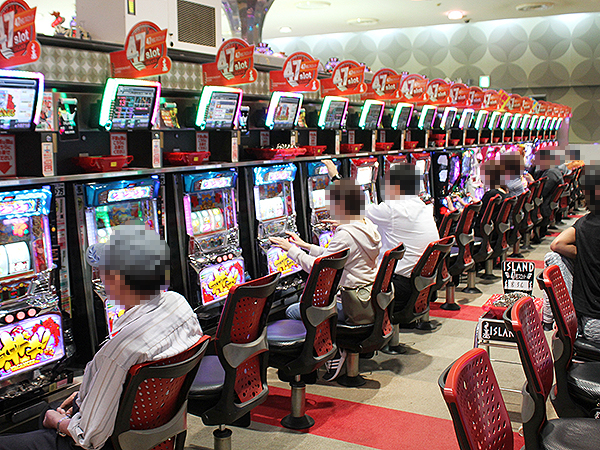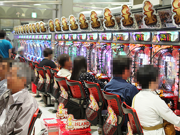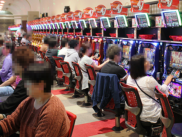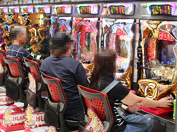 15時半ごろの4円パチンココーナーを見てみると、新台の「CR ミリオンゴッド ディセント」や「CR JAWS再臨-SHARK PANIC AGAIN-」などが大盛況。機種の性能を存分に味わっているプレイヤーも目立ち、きらびやかさが感じられた。